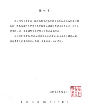 【泓軒食品】聲明書