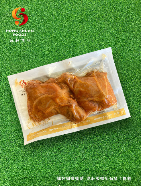 單純辛香料調味、熟化技術料理的方式,享受自然鮮美的燻烤蝴蝶棒腿。