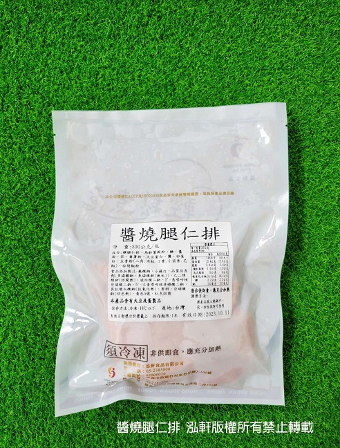 雞腿仁排、馬鈴薯澱粉、糖、醬油、蒜、番薯粉、大豆蛋白、鹽、卵蛋白、五香粉(八角.肉桂.丁香.小茴香.花椒)、白胡椒粉 - 食品添加物: