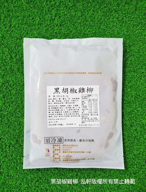 雞肉、糖、醬油、蒜、馬鈴薯澱粉、鹽、黑胡椒、五香粉(八角.肉桂.丁香.小茴香.花椒)、水解玉米蛋白、酵母抽出物、肉抽出物 - 食品添加物: